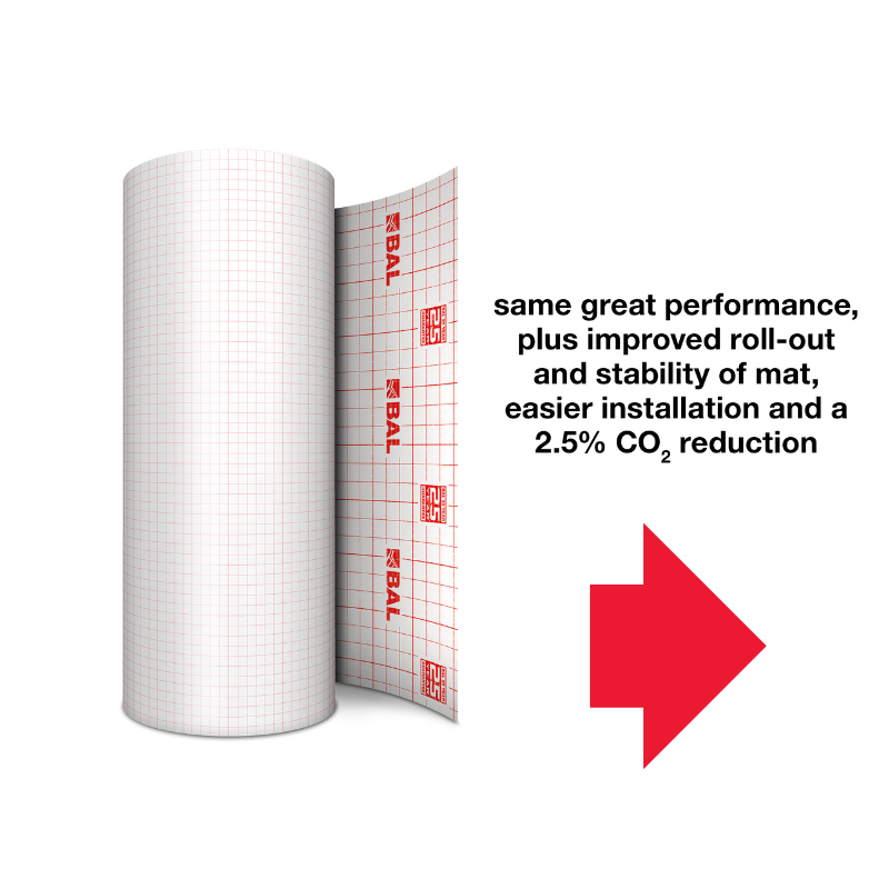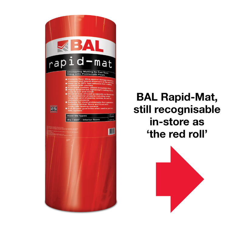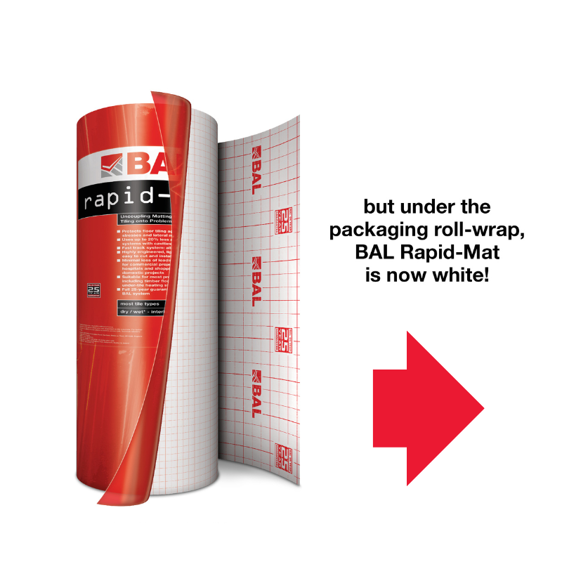 Anyone specifiying tiling onto problematic floors should consider BAL Rapid-Mat. Designed for floors which may be subject to lateral movement stresses, it is ideal for use with underfloor heating, timber substrates and other challenging backgrounds. It delivers major cost benefits over cavity-based uncoupling mats through needing less adhesive and being much faster to install. Projects can be completed more quickly because contractors spend less time mixing adhesive, with fewer interruptions to tiling, and have no need to wait for adhesive to dry.